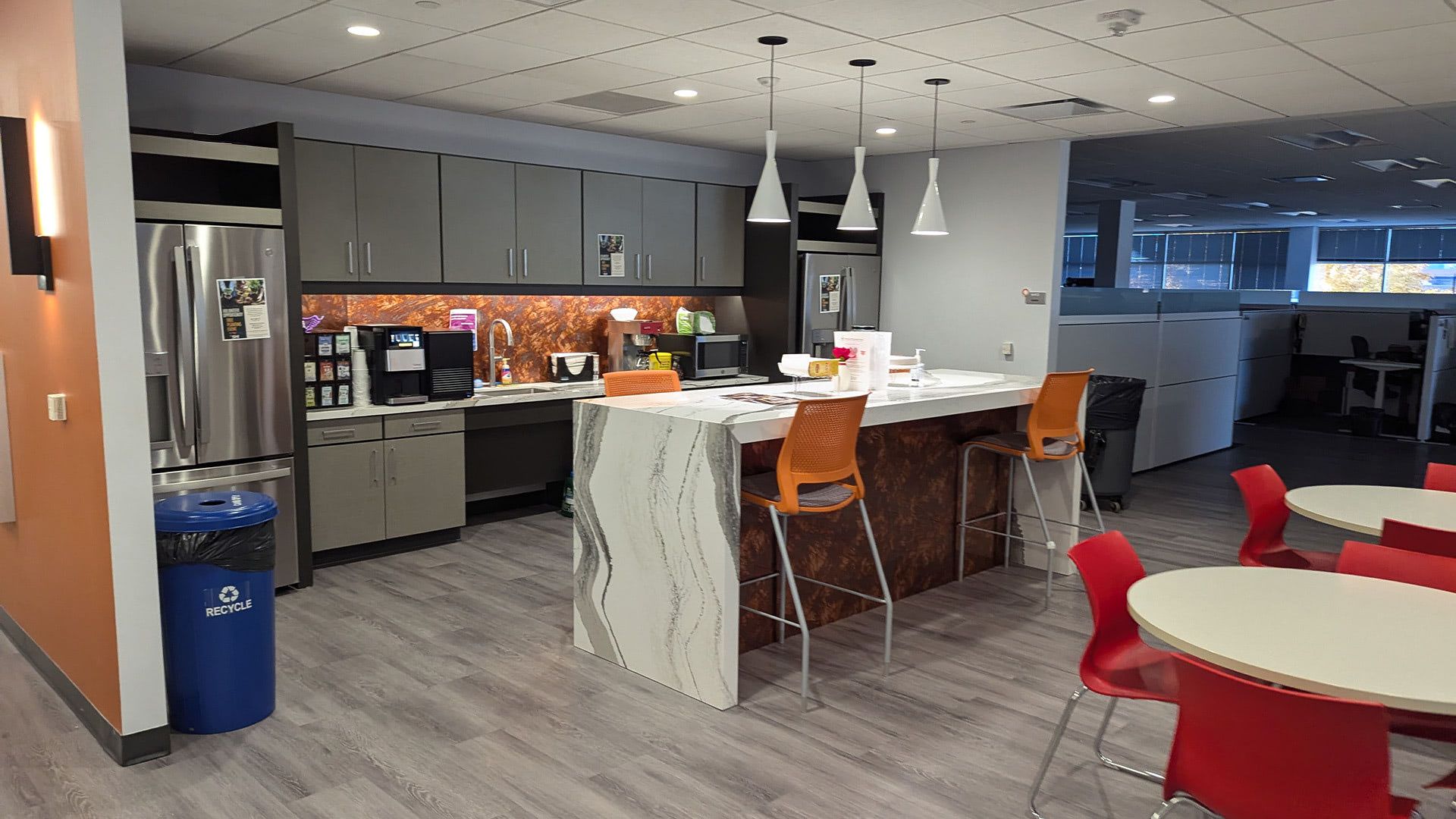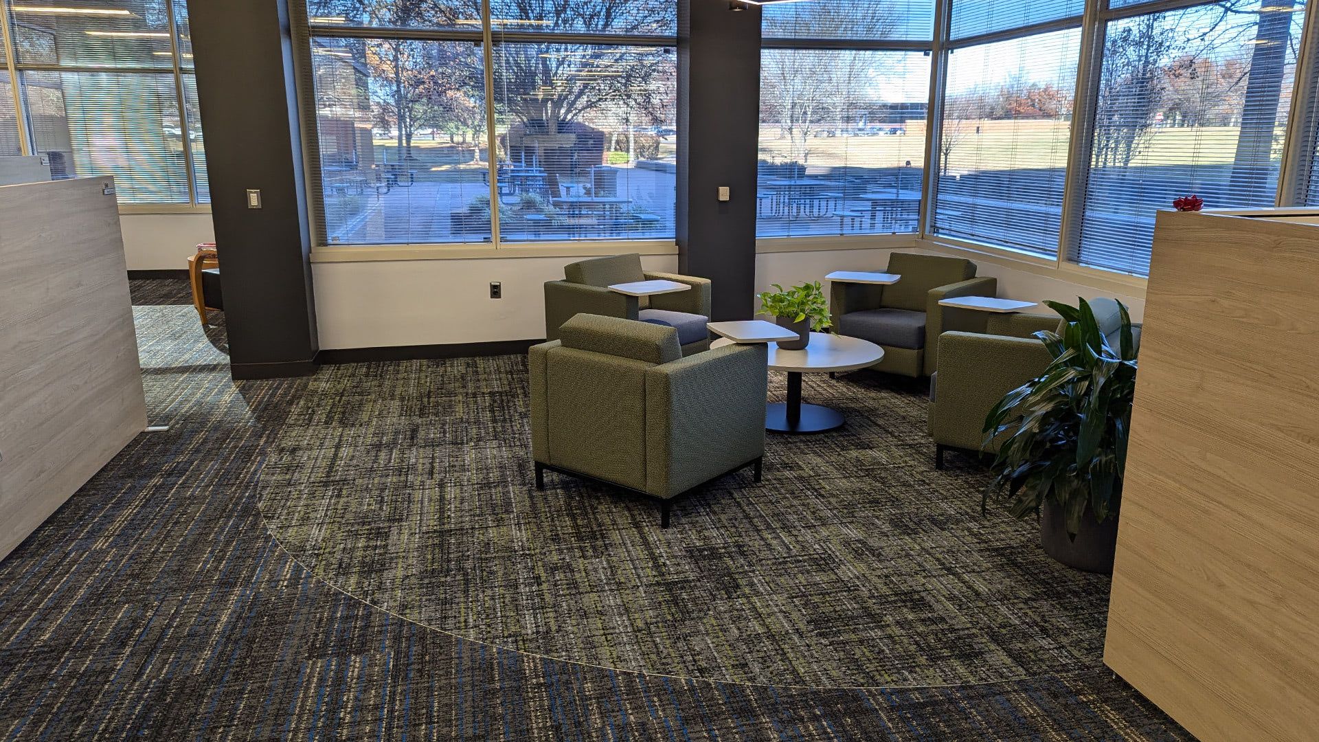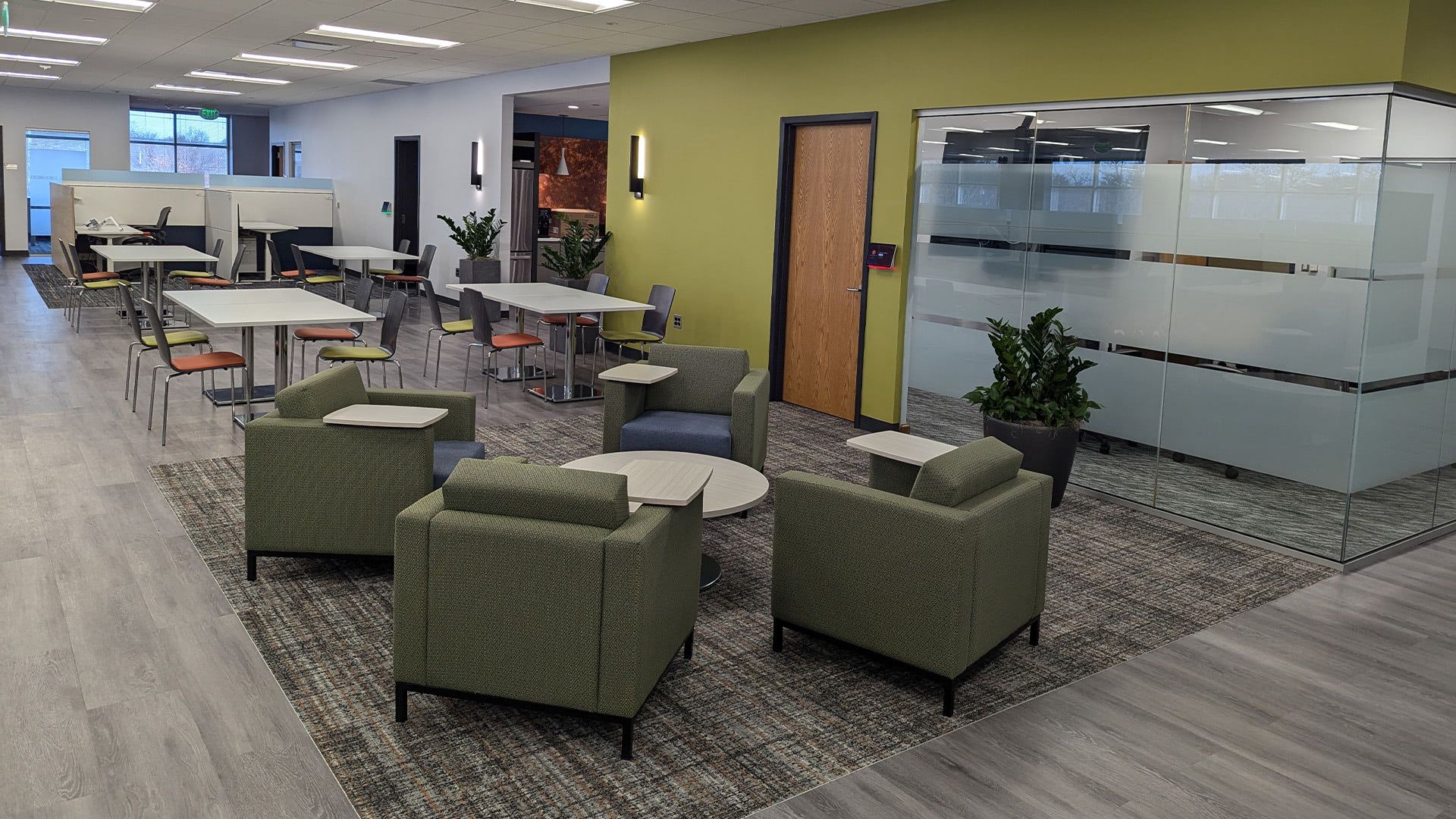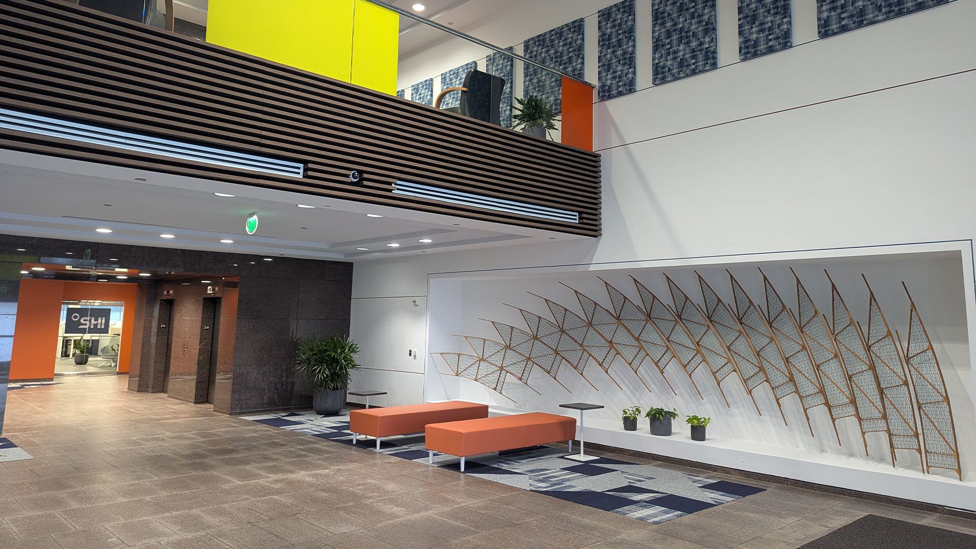 A rejuvination of space, Cornerstone guided SHI in bringing staff back to the office, using well defined space in new ways, layering color and pattern for uplifting morale, and a fear of missing out. Collaboration and excitement now fill the seats of previously underutilized spaces and change management policies enourage reconfiguration, activity zones, and fun.